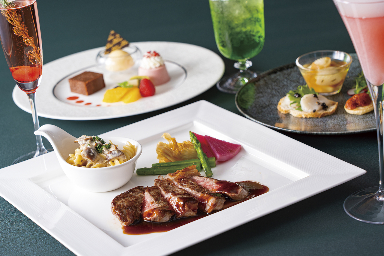 お食事は前菜/メインディッシュ/デザートのシェフおすすめのコース仕立てにてお楽しみ下さい。