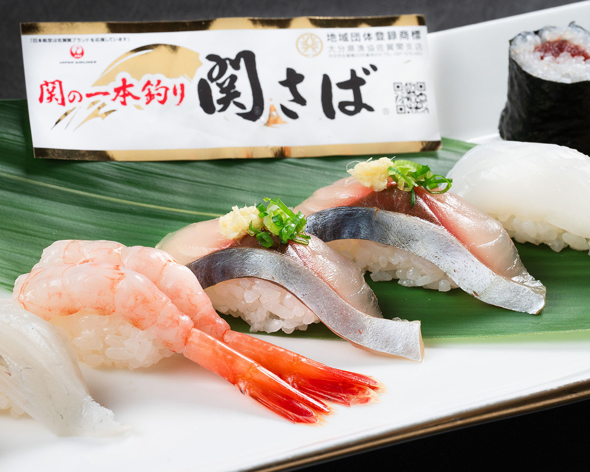 大分県産 関サバ二貫、トロ、甘海老、イクラ、ほか三貫