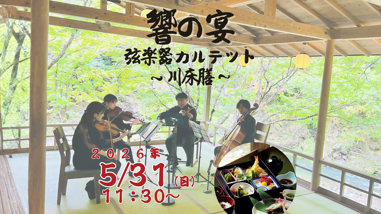 自然のもたらす雄大な風景を背に、ひんやりとした気候の中、清滝川の流れに誘われ、源氏ぼたるの飛び交う川床にて、新鮮な食材と地元の鮎にて夏の京料理に舌づつみ頂、ステキな一時をお楽しみ下さい。