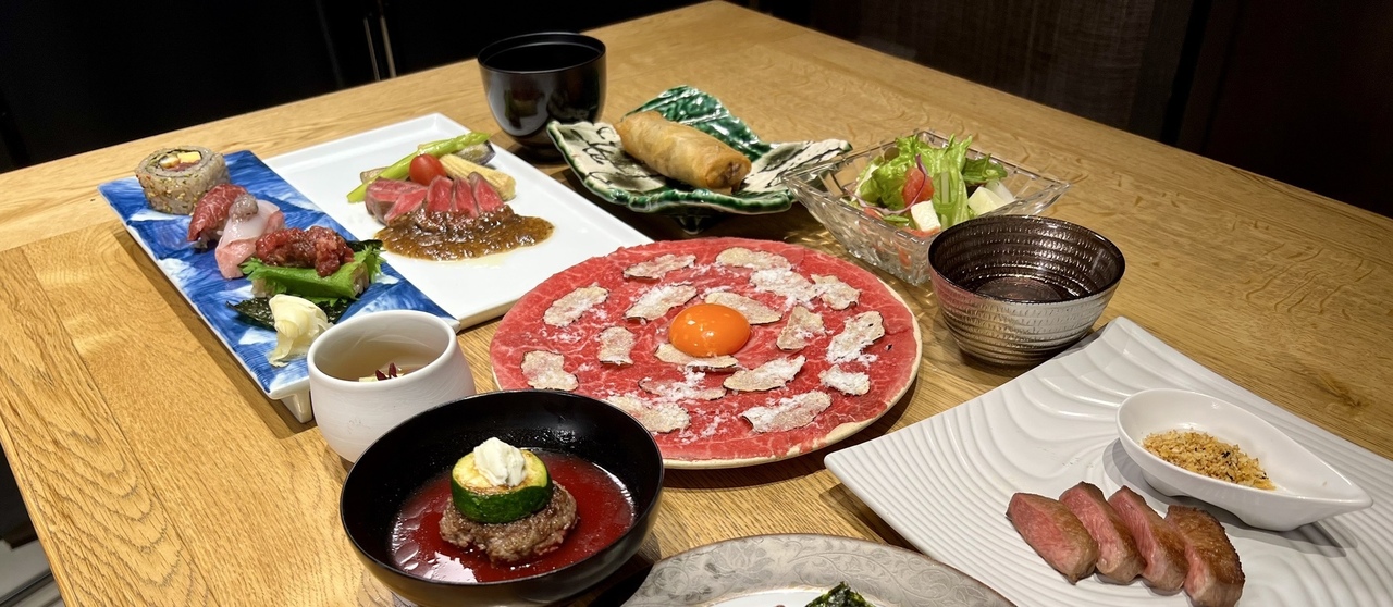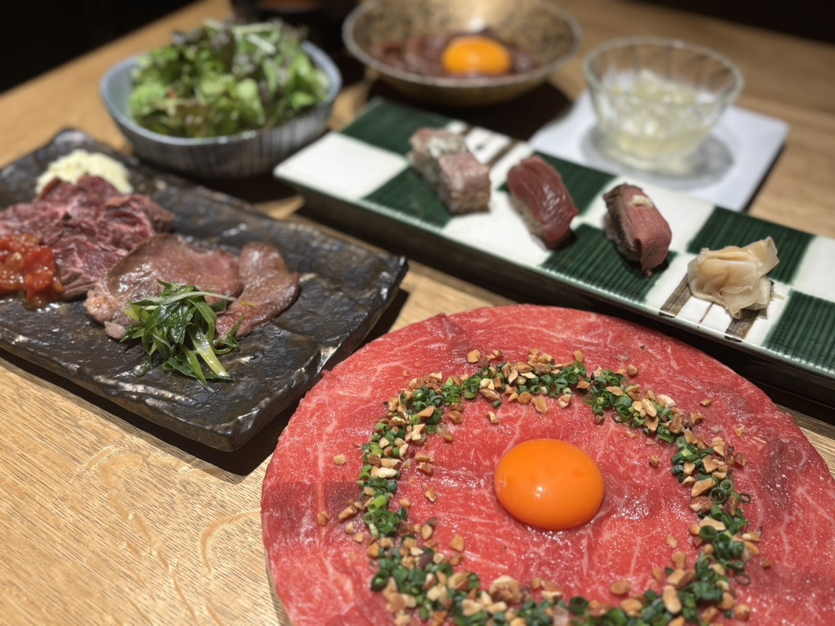 贅沢なプラチナユッケやジューシーな牛タン焼き、さらに絶品牛肉寿司3貫が楽しめるランチ限定コース!至福のひとときをお届けします。