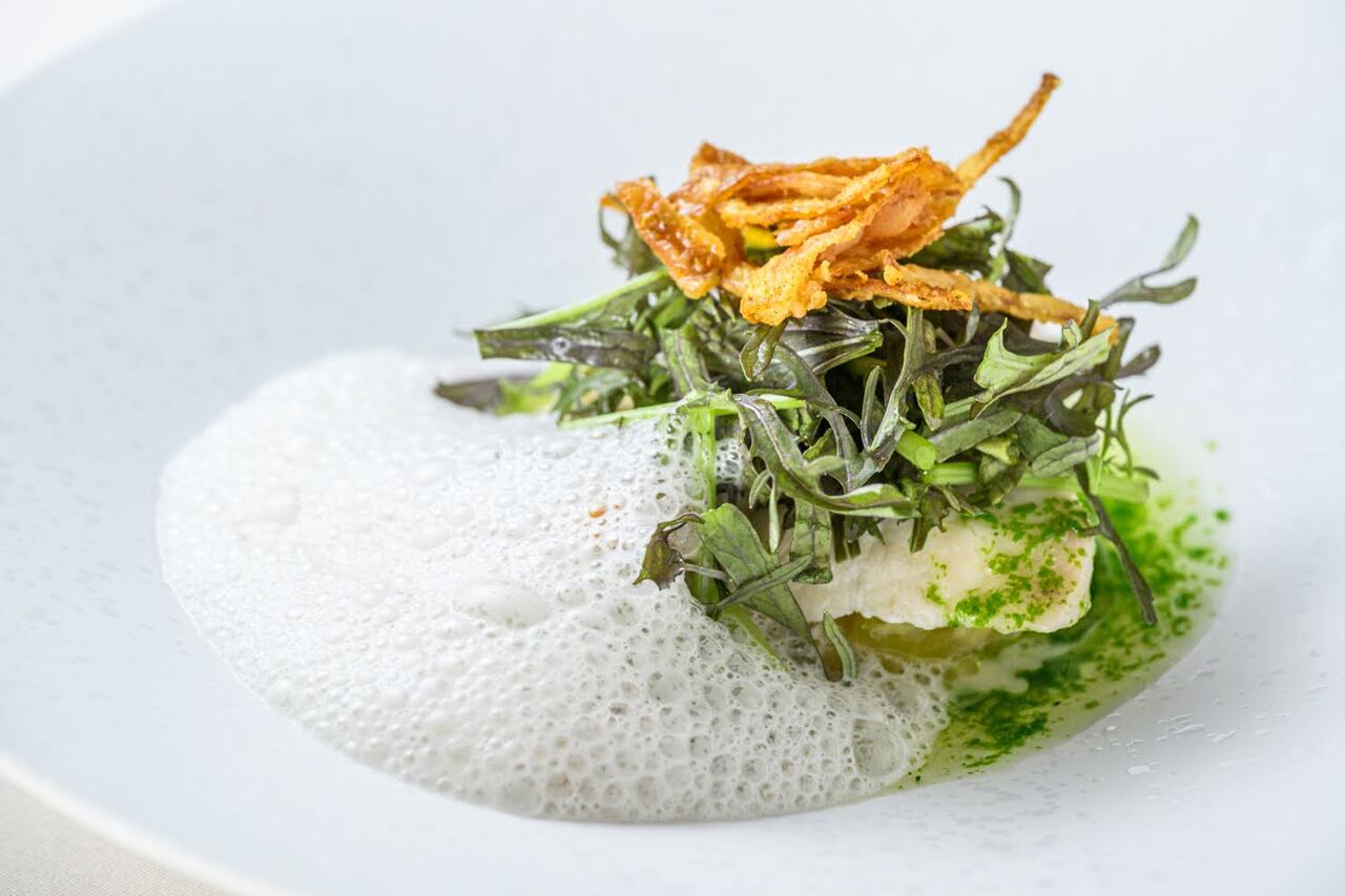 ・旬産旬消明石のお魚のアラヴァプールと菜の花 にし貝と白ワインソース