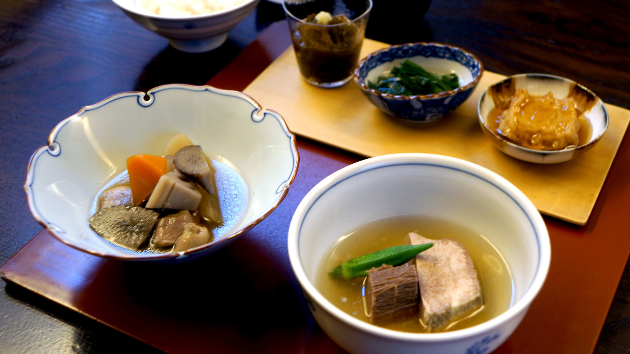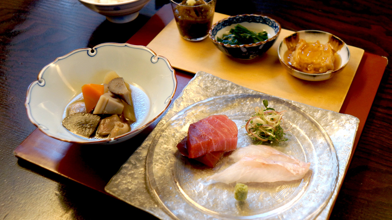 季節の移ろいを盛り込んだ「旬菜三種盛り」や小鉢が、お食事に華を添えます。
