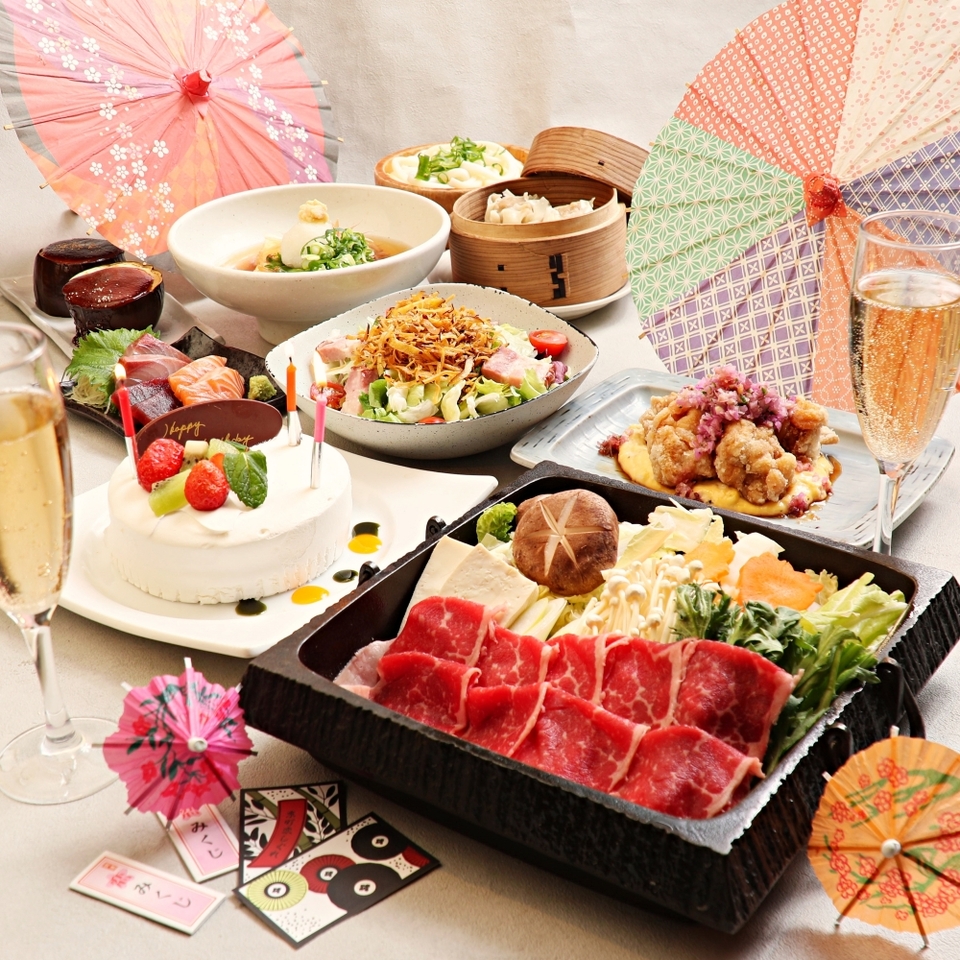 【お食事コース】国産黒毛和牛すき焼き、薬味たっぷり揚げ出し豆富など 全9品