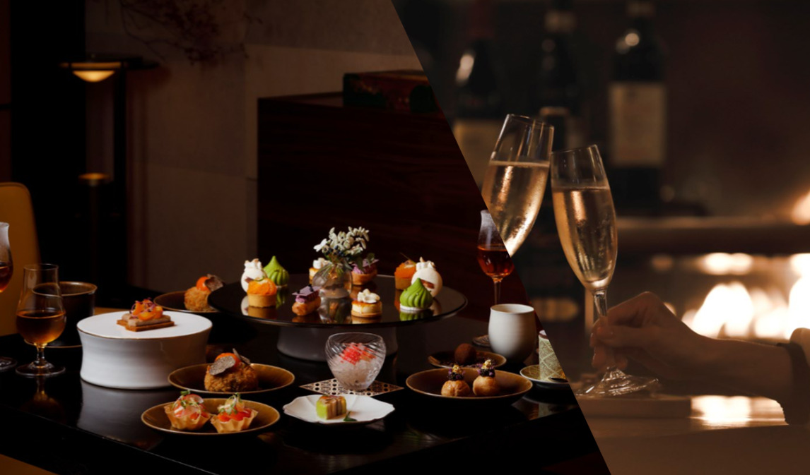 きらめくミラーの上には、冬の美しさを映し出すスイーツが並び、コースのフィナーレには、焼き立ての濃厚なチョコレートスフレをご堪能ください。
