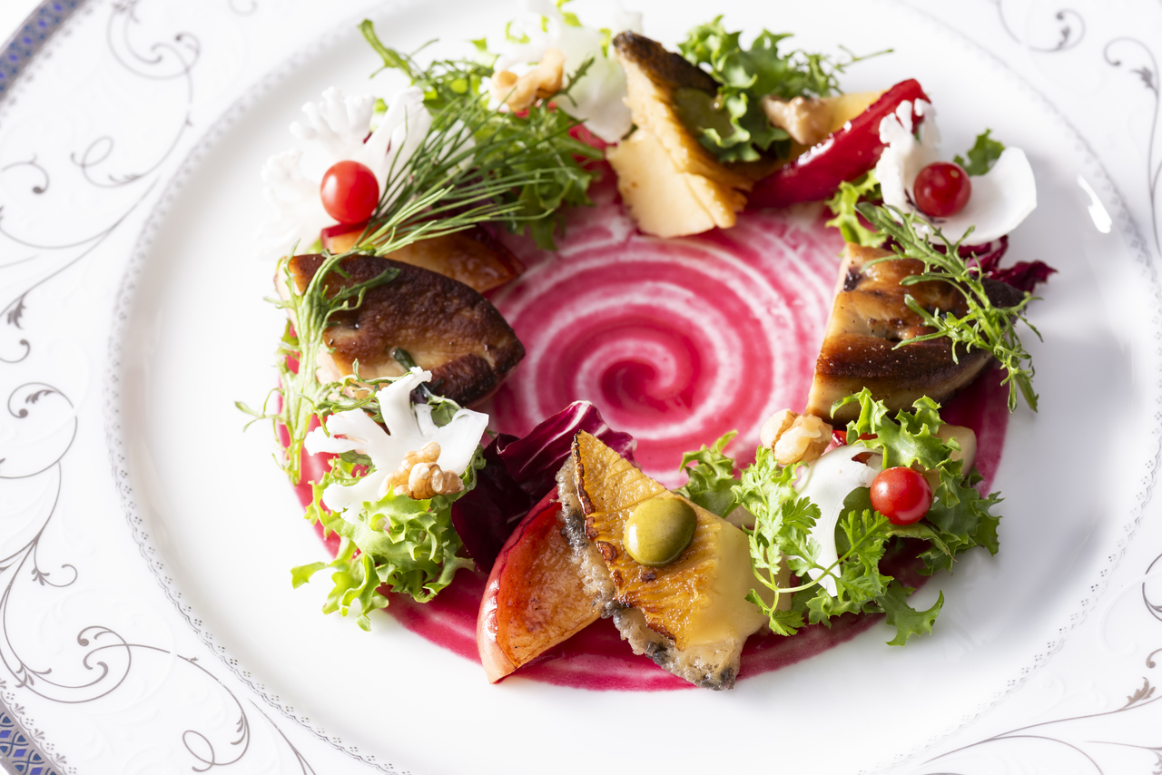 ■フォアグラと林檎と胡桃のリース仕立て シェリーヴィネガードレッシング