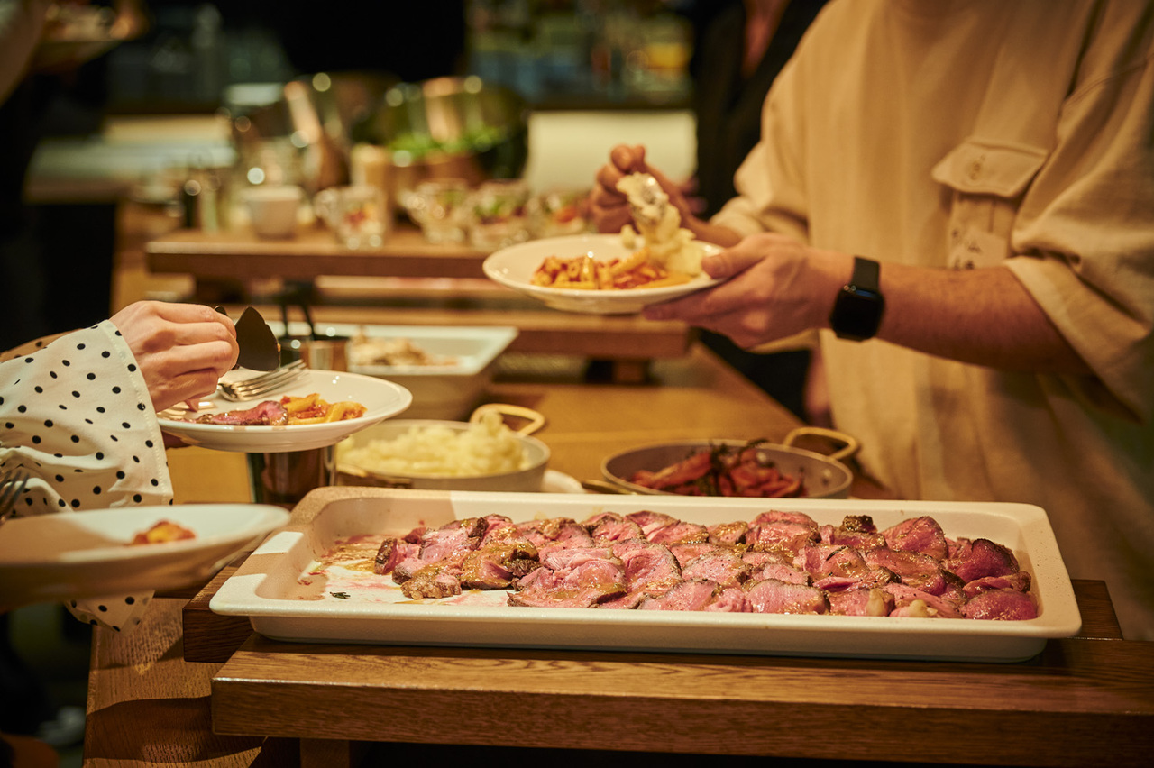 イタリアンを軸にしたフードブッフェとドリンクのフリーフローを囲みながら、街と人がつながる、ホテルのはじまりの夜をお過ごしください。