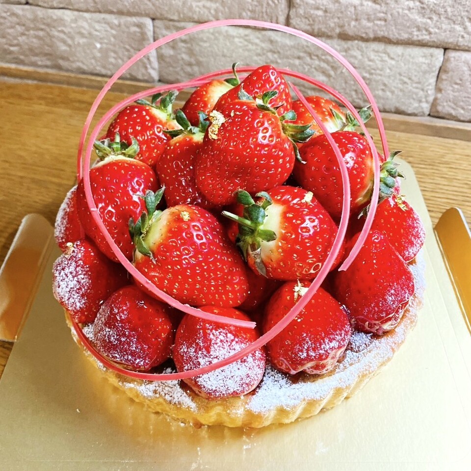 サクサクのパータフォンセにアーモンドクリームとカスタード、苺を贅沢に山盛りしました。
