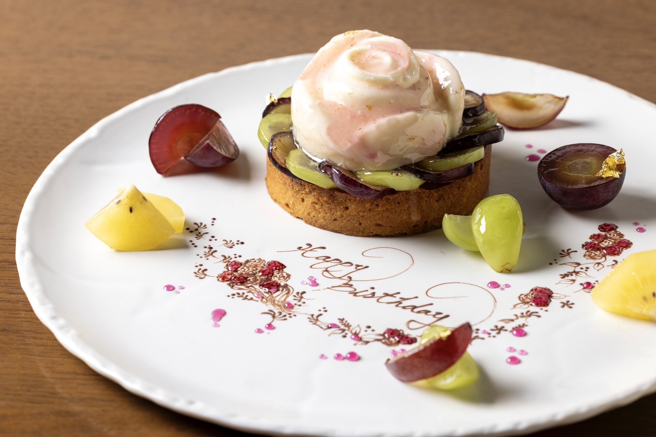 (+660円)富有柿とシャインマスカットのスープ オレンジ風味のバニラアイス