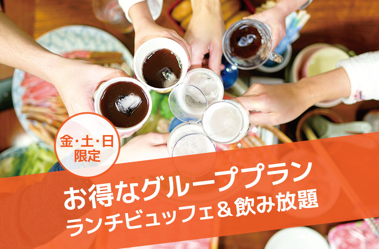 【歓送迎会グループプラン】大人6名以上のグループでお得 ◆ 飲み放題付きランチビュッフェ