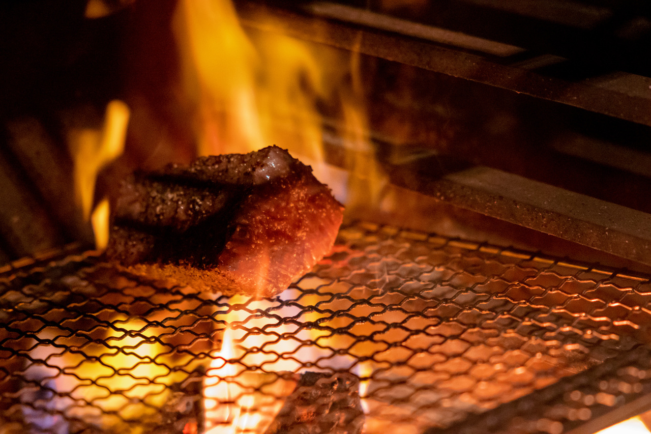 ・黒毛和牛ランプの薪焼と万願寺唐辛子