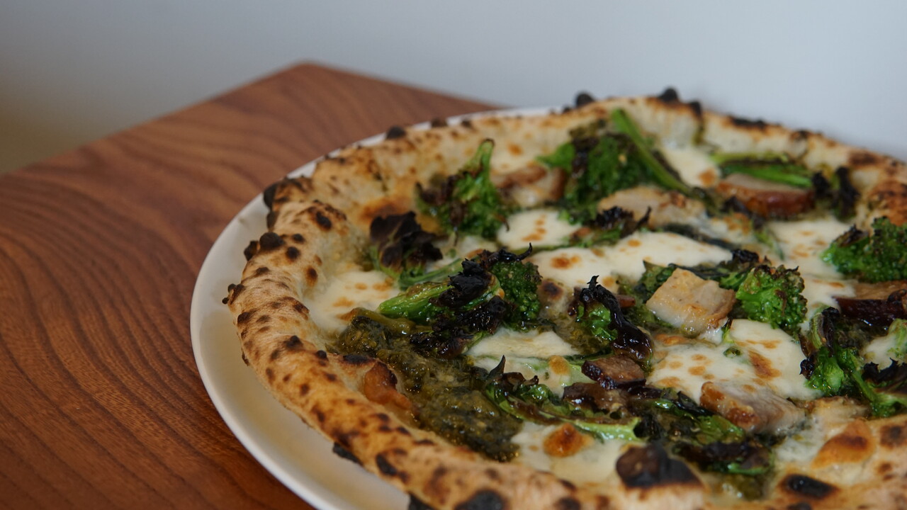 菜花、モッツァレラ、自家製ベーコン、グラナパダーノ、オリーブオイル、柚子胡椒