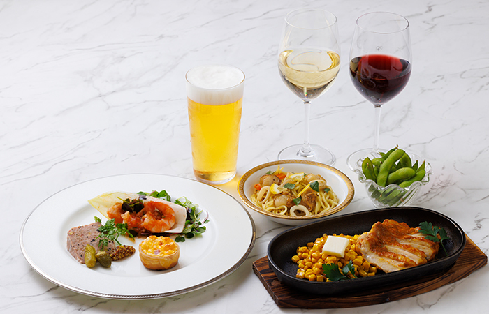 ビール、ワイン(白・赤)、ウイスキー、焼酎(芋・麦)、オレンジジュース、ウーロン茶