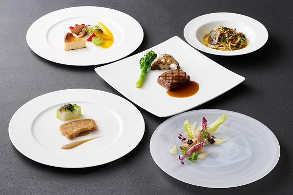 フレンチ料理をベースにイタリアンの技法を加えた彩り豊かなメニューをご用意いたしました。パスタとリゾット、メインのお料理がお選びいただける内容となっております。