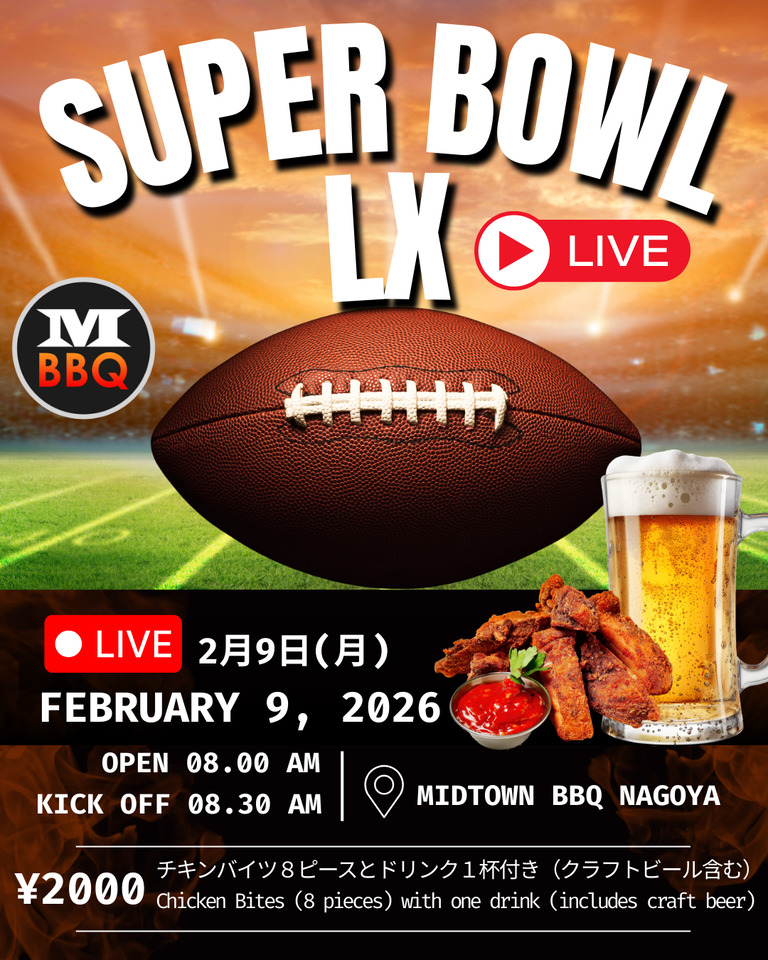 Midtown BBQ Nagoyaおよびグループ店からのお知らせを受け取る (不要な方はチェックをはずしてください)
