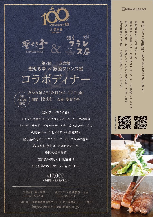 三笠会館 聖せき亭およびグループ店からのお知らせを受け取る (不要な方はチェックをはずしてください)