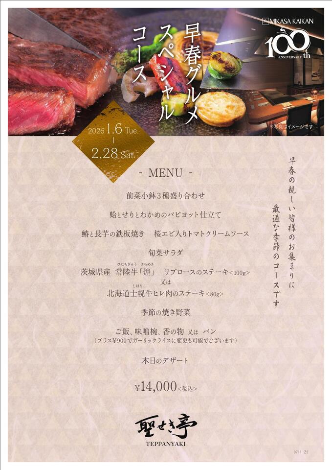 1/3(土) 11:00~22:00 (Lo.20:00) ディナーコースのみ