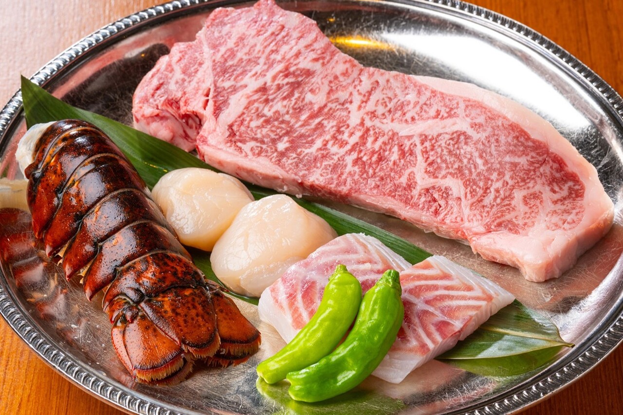 ★乾杯ドリンク付【茜C】一頭買い『鹿児島県 黒毛中山牛』とオマール海老の鉄板焼きコース(2026.2.1~)