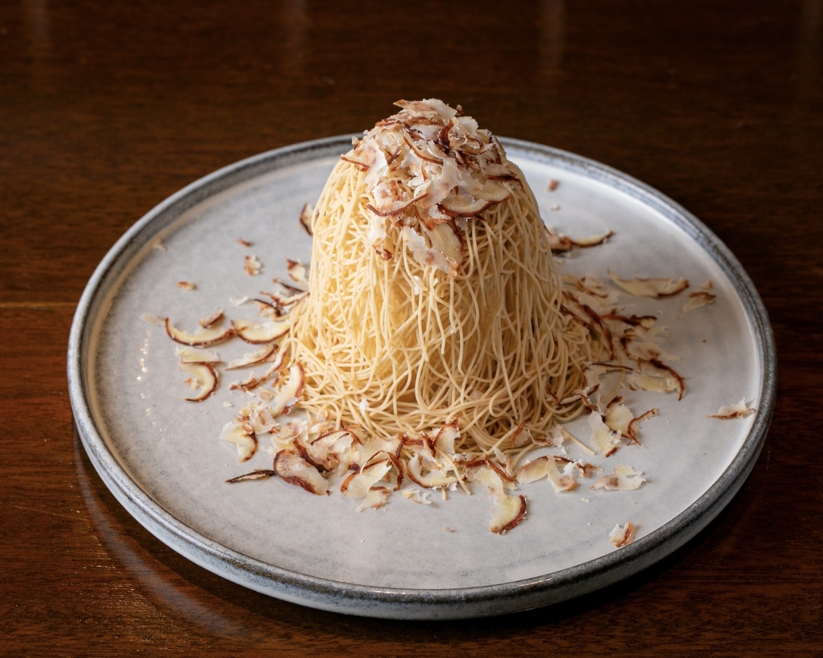 ・長崎県産マグロ、パプリカ、ボッタルガ、桜のスモーク