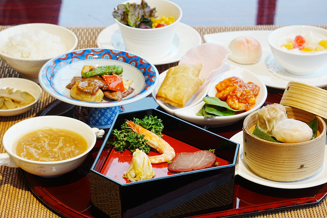 「発芽玄米入り中華粥」「県産雑穀粥」に海老料理や特製春巻など、彩り良くバラエティー豊かなお料理を週替わりでご用意しております。