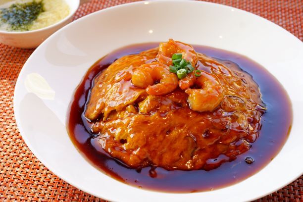 ・海老玉天津飯 黒酢あんかけ