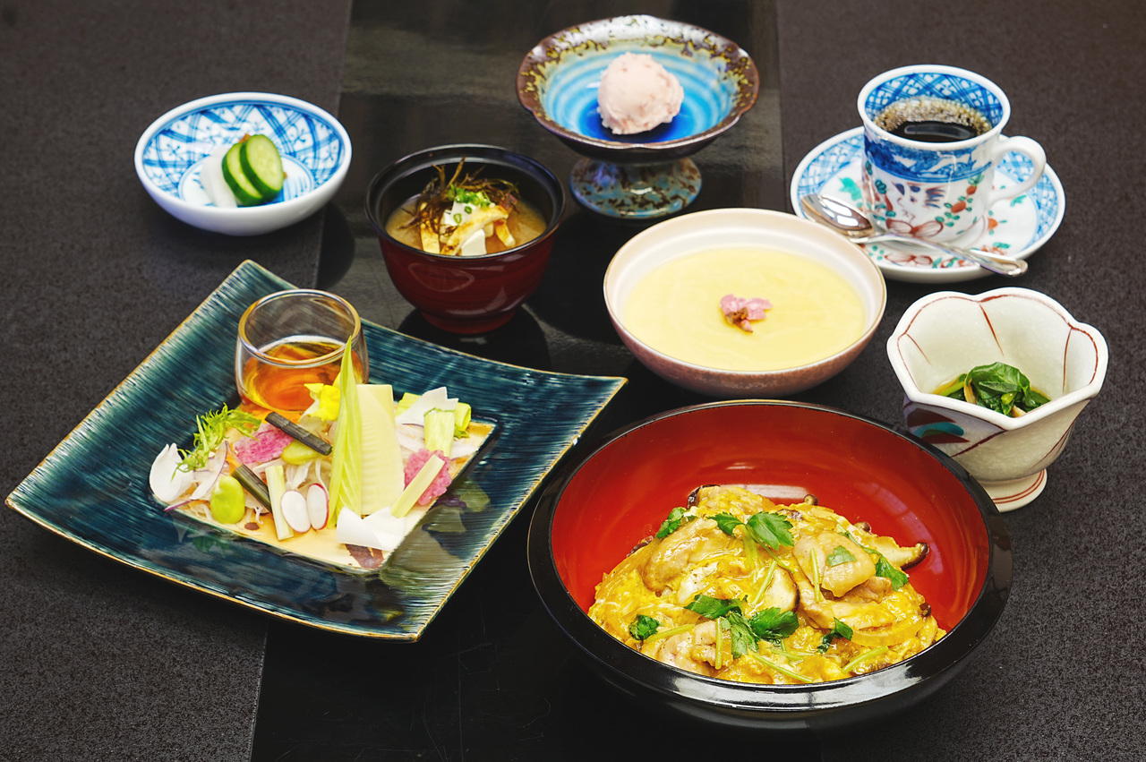 小鉢 茶碗蒸し 天婦羅 味噌汁 シャーベット コーヒー又は紅茶
