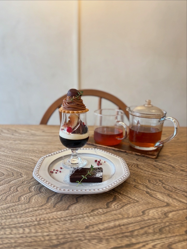 <休日>【Season sweets‼︎】モンブランとほうじ茶のプリンアラモード