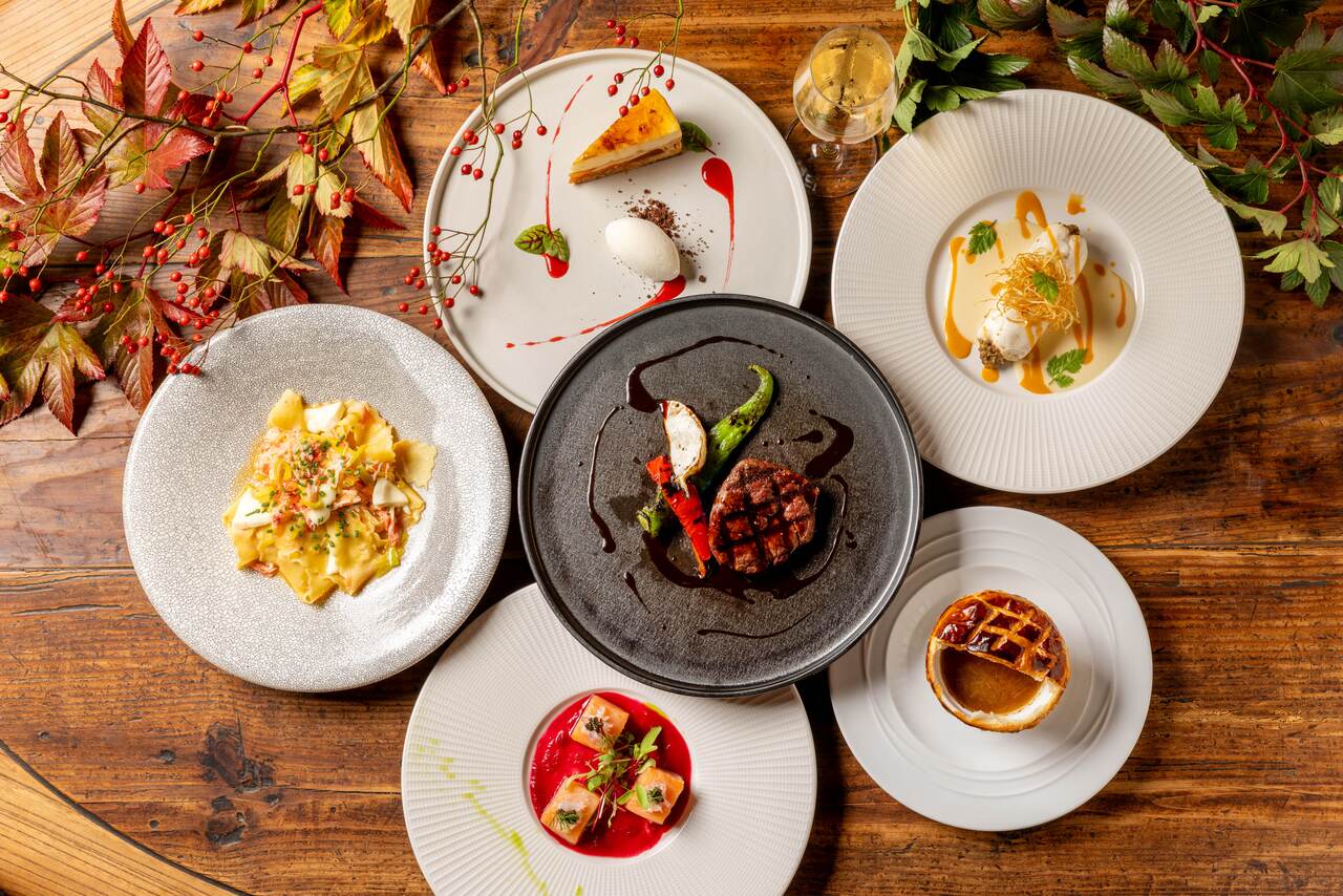 前菜、選べるパスタ、メイン、デザートが付いた全4品(12/20~1/4限定)に1品無料アップグレードと2ドリンクが付いたお得な限定プラン