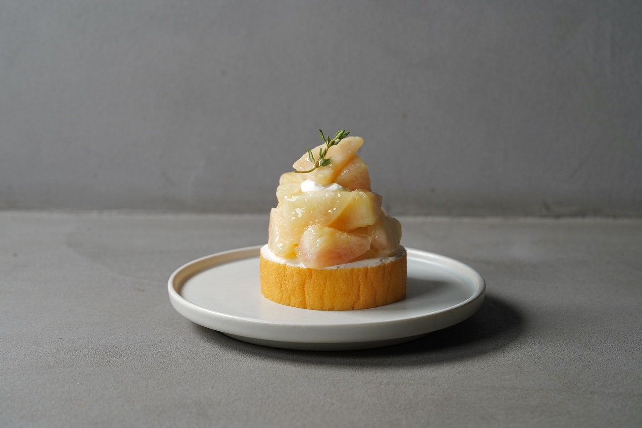 バウムの中には桃、ピーチカスタード、ミルクティークリーム