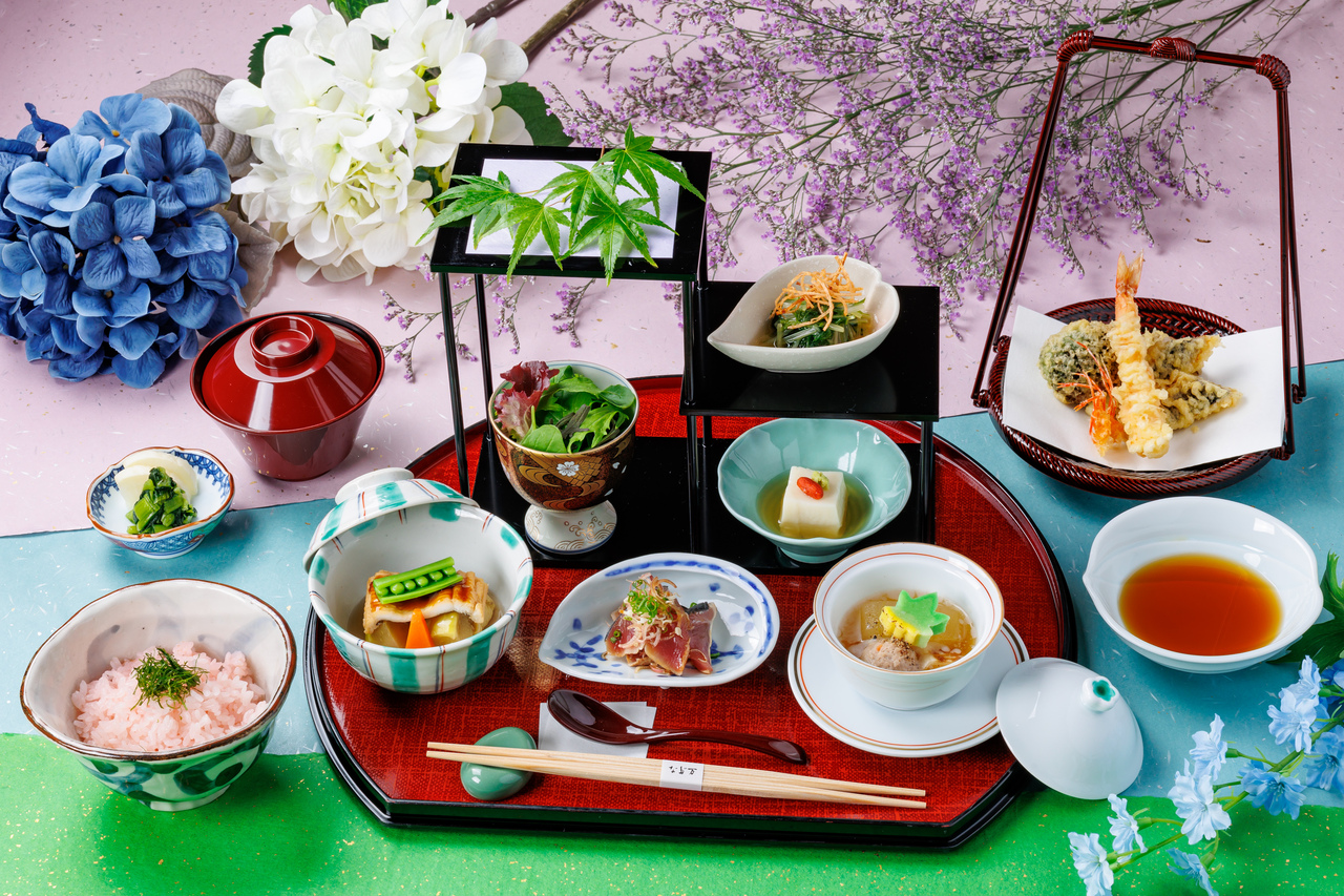 先付・お椀・天婦羅・サラダ・肉料理・食事・デザート
