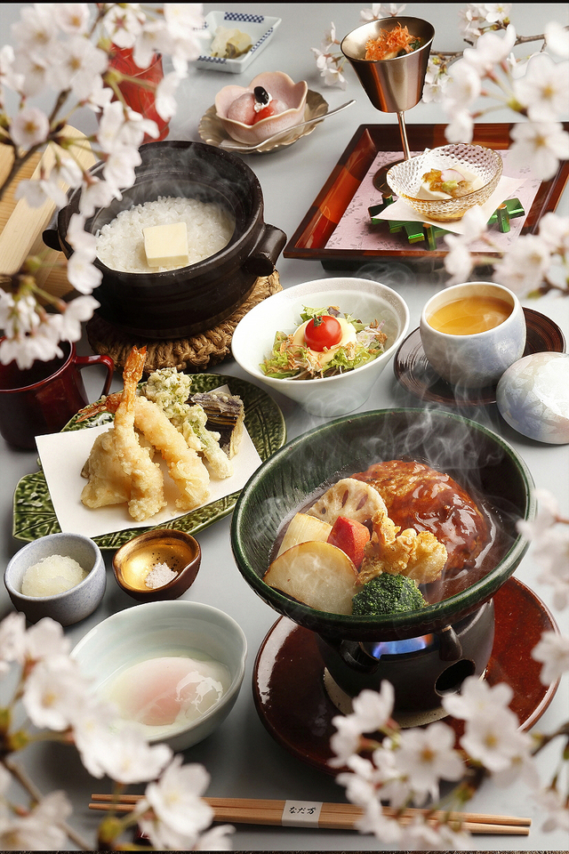 春の萬助は、新メニュー『味噌煮込みバーグ』と人気メニュー『うなぎまぶし』をお選び頂ける、期間限定コースをご用意いたします。