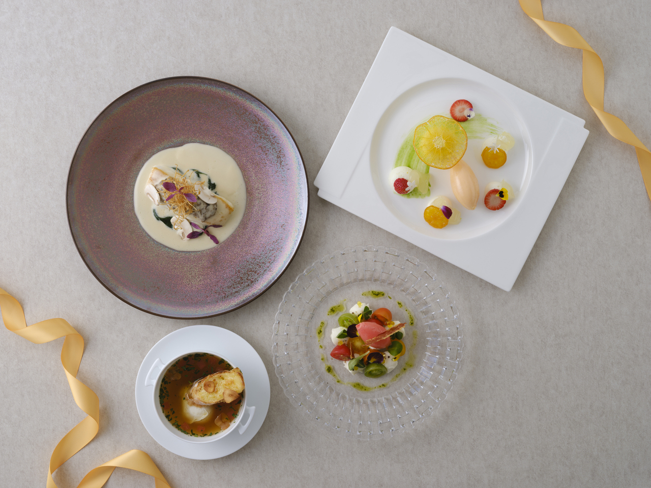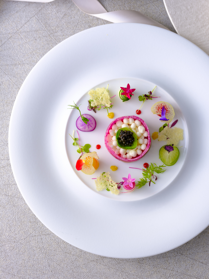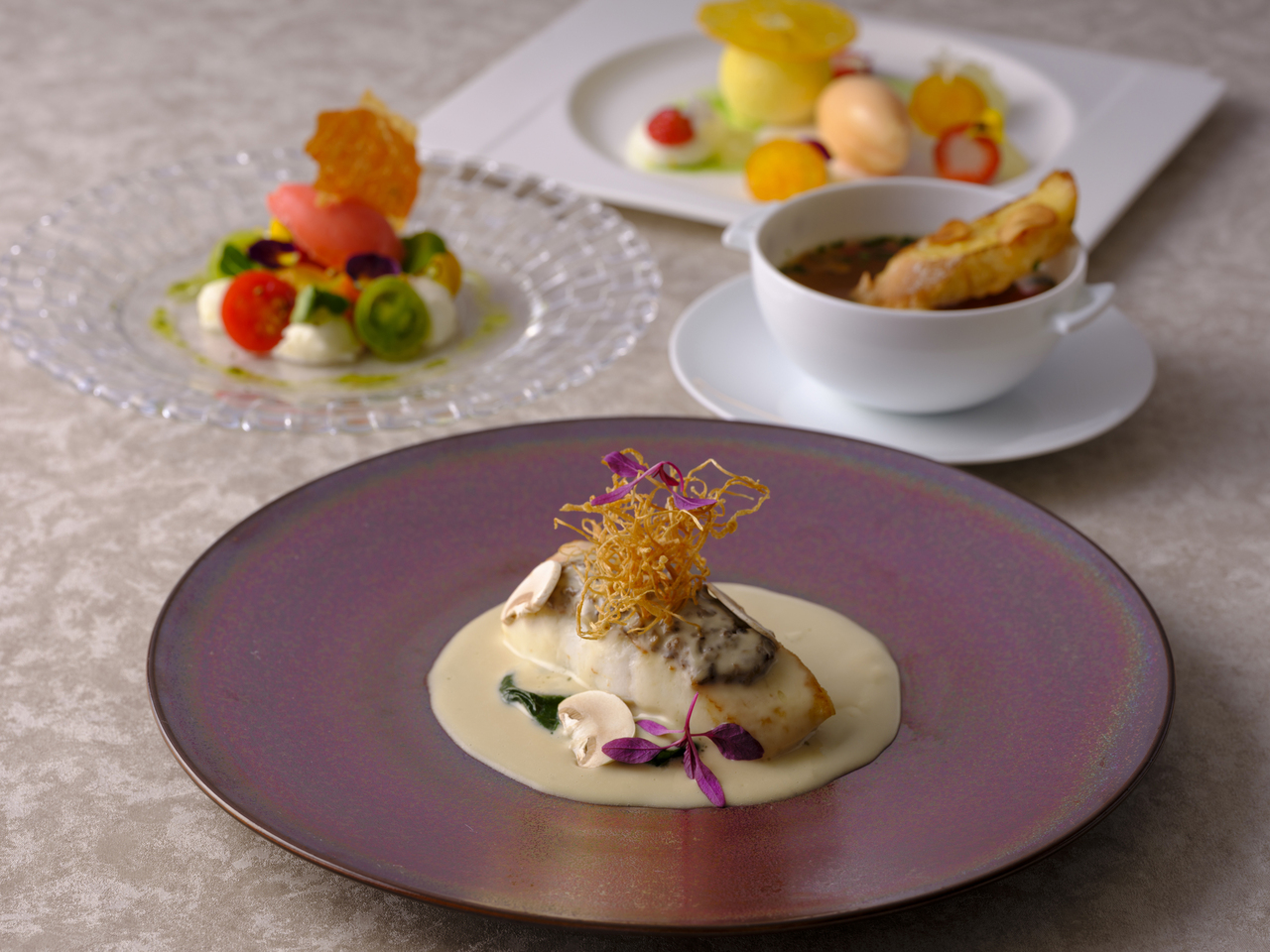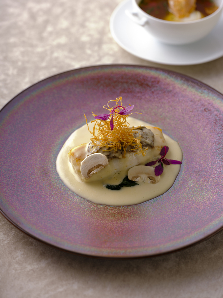 長崎県産ハタのスチーム “ブロッコリクルート” 白菜とビーツのナージュ
