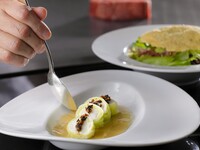 ・蝦夷鮑のポワレ ポワローのフォンデュと肝のヴィネグレットソース