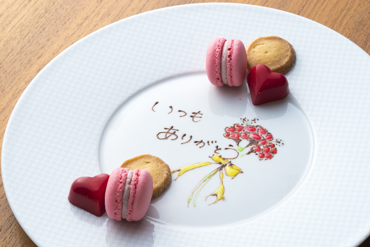 メッセージプレート(無料)や記念日ケーキ(有料)のご予約も承っております。
