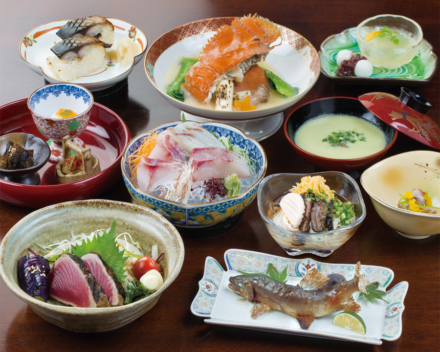 ズワイガニ・海老・クエなどの極上海鮮と祢保希自慢の厳選A5ランク黒毛和牛のしゃぶしゃぶをお楽しみいただけます。