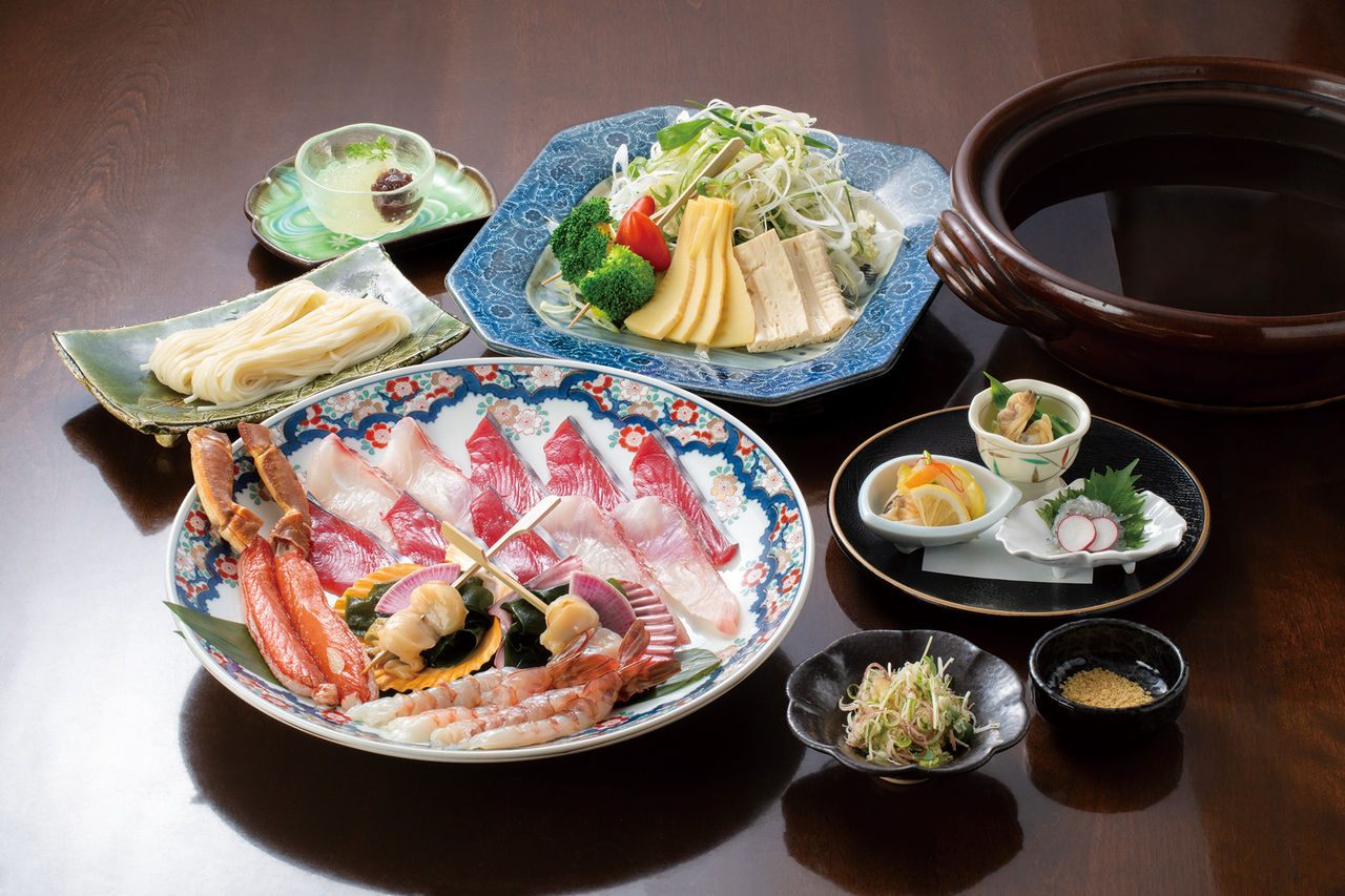 季節限定【土佐しゃぶ・鰹たたきコース】祢保希自慢の鰹と極上海鮮のしゃぶしゃぶです。