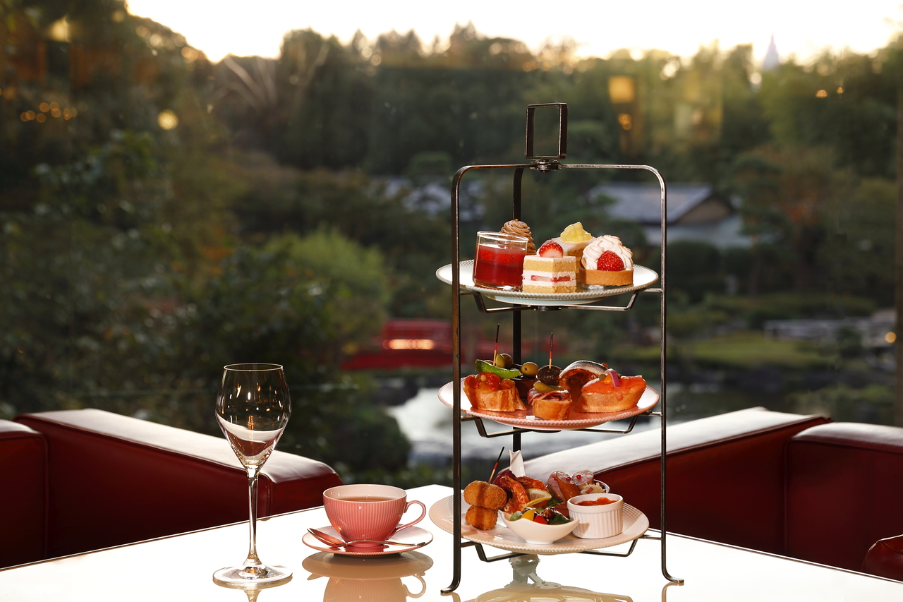 「ディナー感覚で優雅に楽しめる」として人気のハイティー。グラスシャンパーニュとともに、ライトアップされた日本庭園の美しい景色を眺めながら優雅なひとときをお過ごしください。