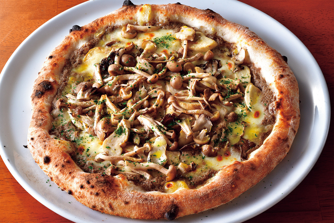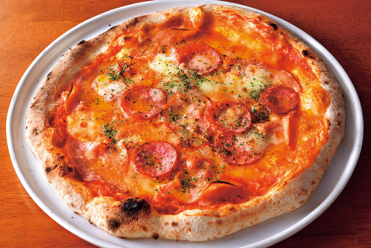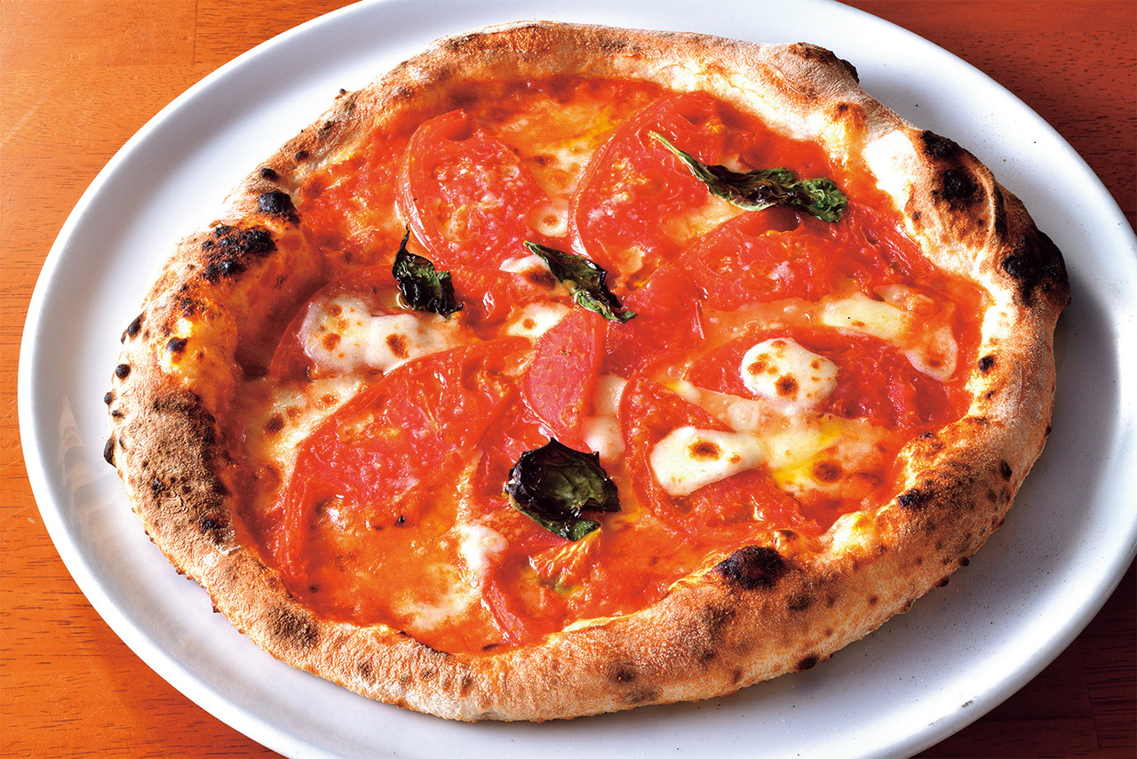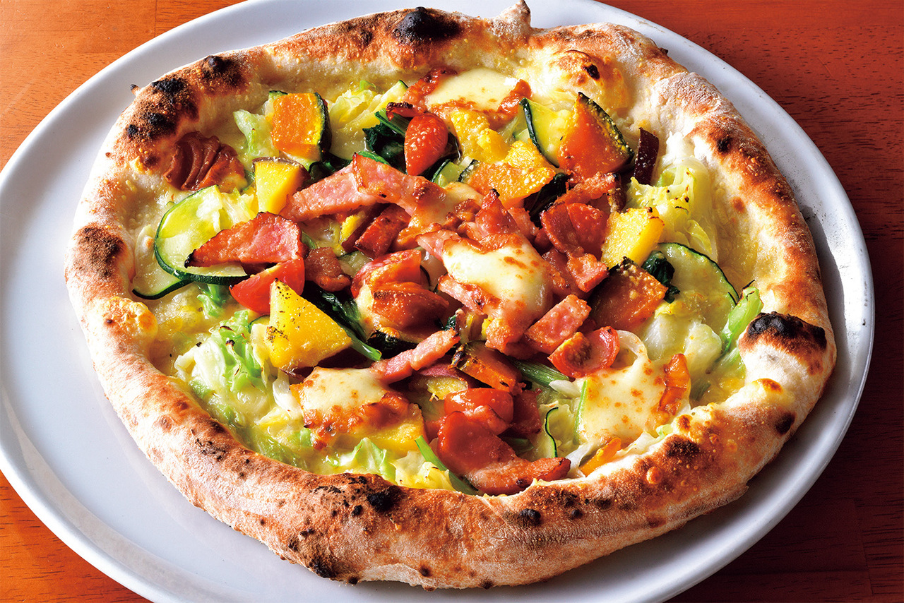 ⑴豊栄産トマトのマルゲリータ ⑵豊栄野菜と自家製燻製チーズとベーコン