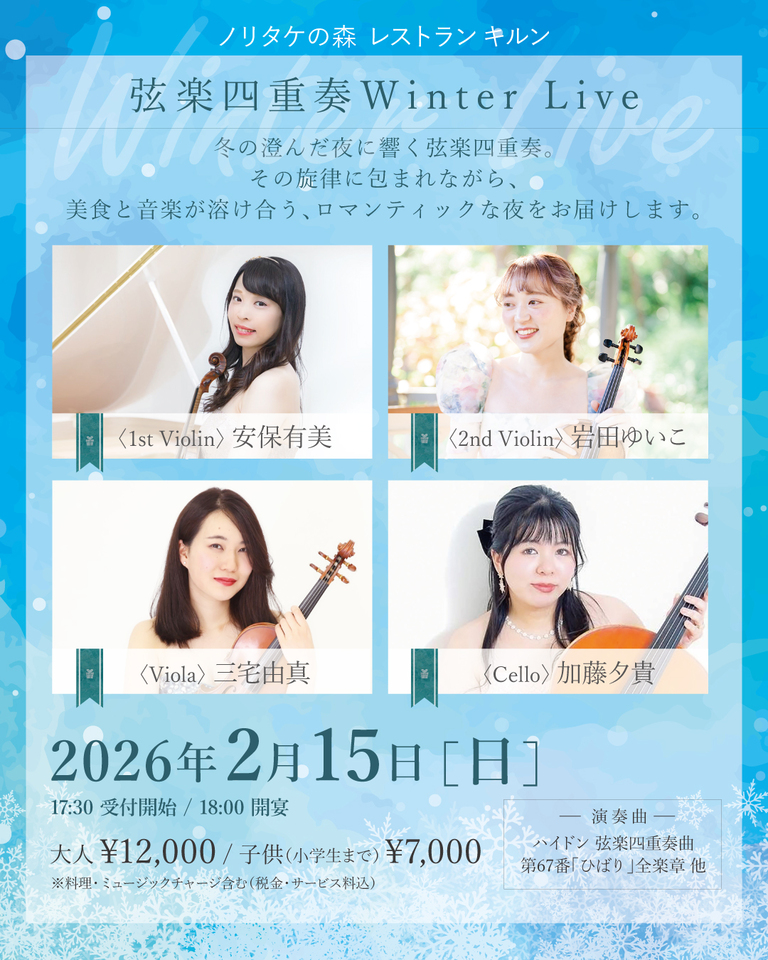 2/15(日) 弦楽四重奏 Winter Live【子供】