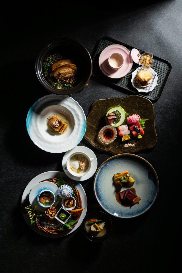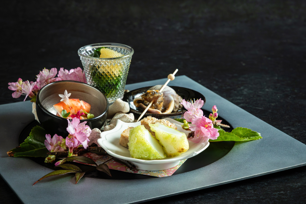 沖縄ならではの食材やその時期の旬のものを活かしたオリジナリティ溢れる創作和食。オーナーシェフ・岡元信と料理長・梶原信治の生み出す和のキュイジーヌをお楽しみください。ソムリエが厳選したワイン&SakeDiplomaが厳選した日本酒ペアリング付(4wine&2Sake Glasses)