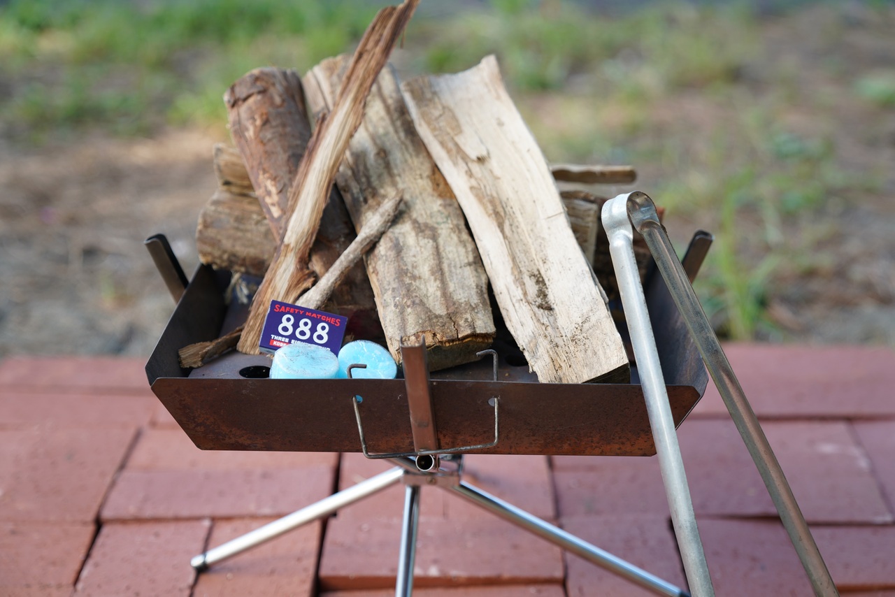 炭火BBQグリル(アミ・炭・着火剤・マッチ・炭ばさみ付) ・トング・包丁・まな板・テーブル・折りたたみイス(人数分)