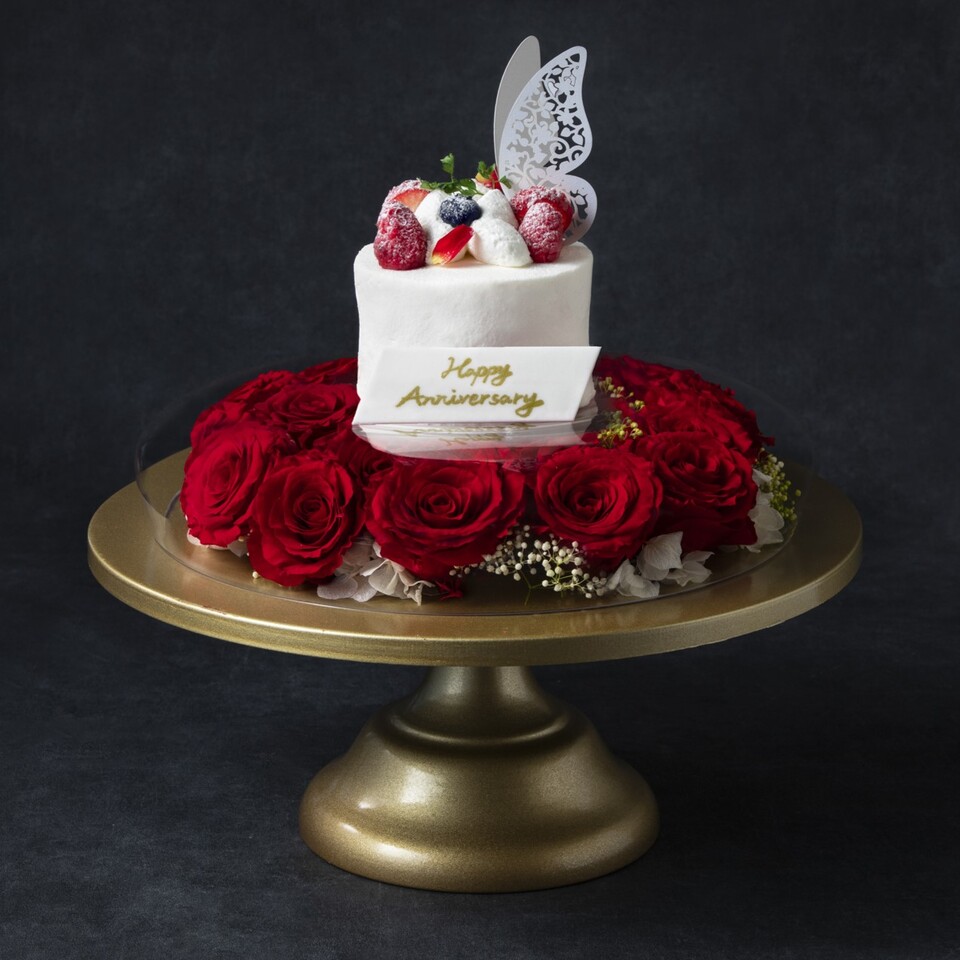 難波一望の眺望で「お祝い」ランチ!薔薇に彩られたオリジナルケーキをご用意しております!