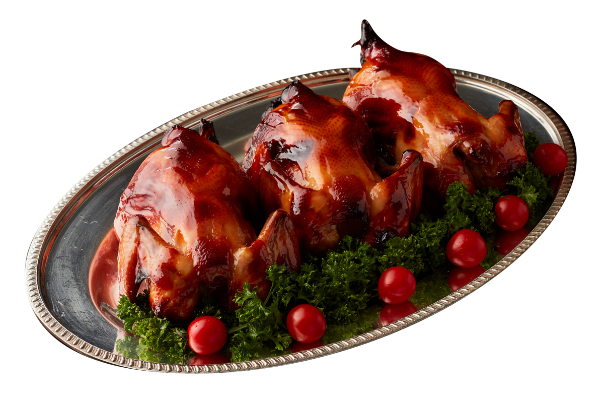 トルファンのシェフが、丸鶏1羽を特製叉焼ダレで1日半漬け込み、窯焼きで1時間じっくり焼き上げました。仕上げに自家製の飴をかけ表面に艶を出して仕上げております。