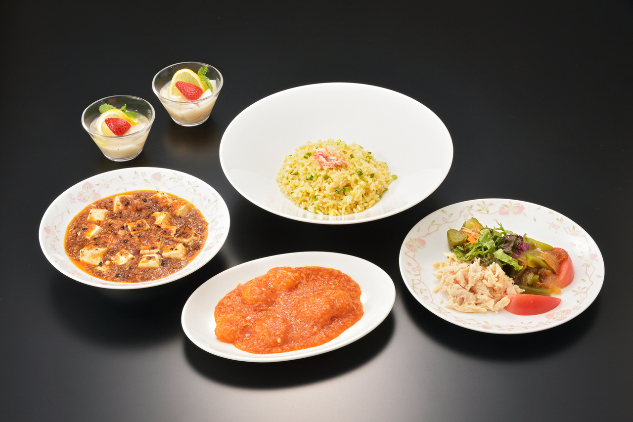 お好きな料理に、 麺料理と麻婆豆腐、デザートなどがついたランチセットです。