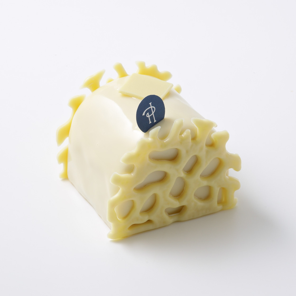 北海道チーズケーキは、パークハイアットニセコとピエール・エルメ・パリのコラボレーション。バター風味のサブレ生地、ふわふわのチーズケーキ、北海道産生クリームのムースで構成されている。