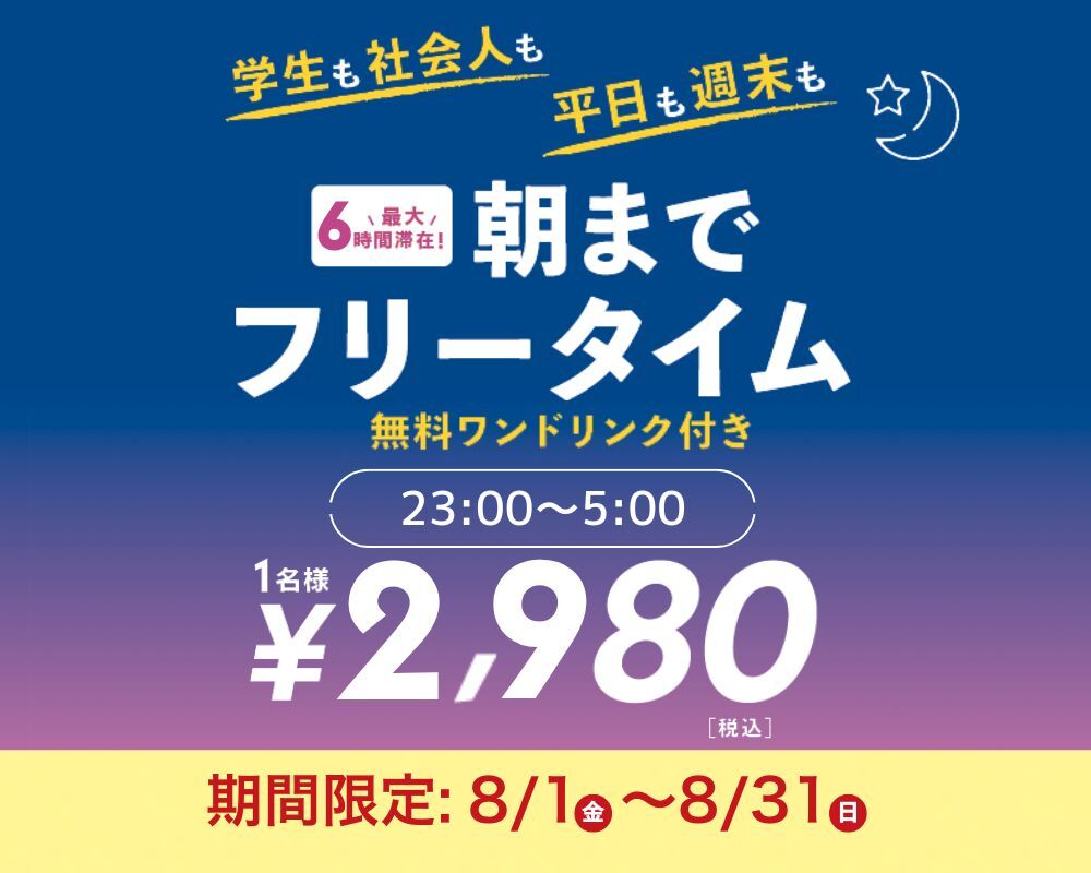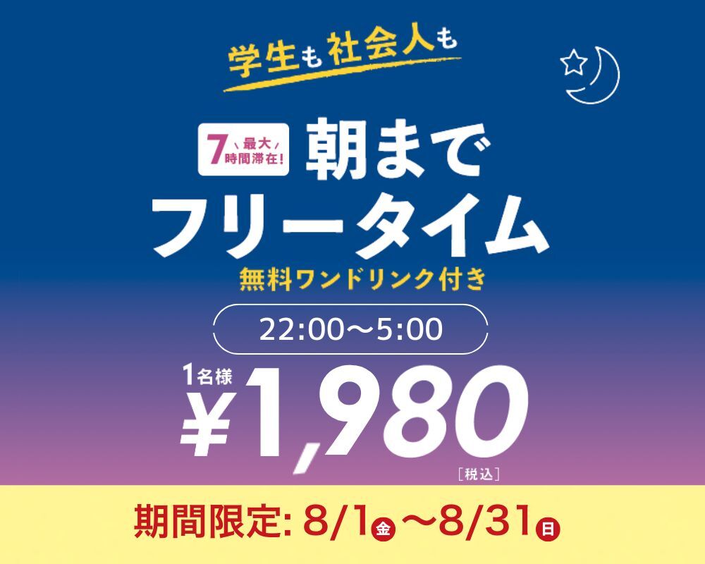 【8/1~8/31期間限定】お得なオールナイトフリータイム(金・土・祝前日)についての質問