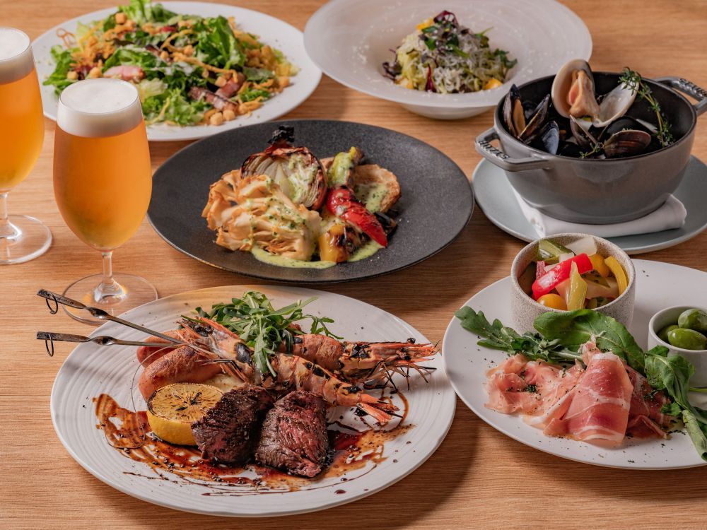【プレミアムビアテラス】国産牛フィレや旬の味覚全7品+ビールやスパーク含む2時間飲み放題