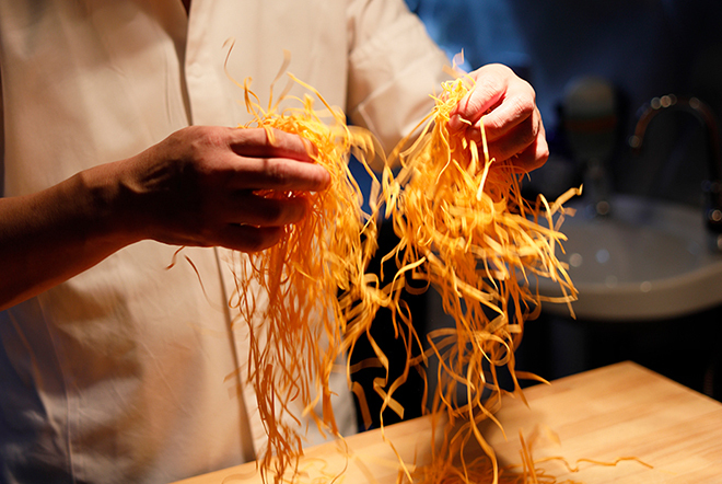 こちらのコースは入荷の食材により皿数及び価格 (30,800円~38,500円税込・サービス料別) が変動いたします。