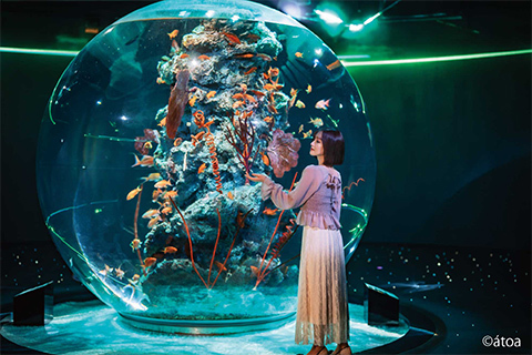 劇場型アクアリウム「AQUARIUM×ART àtoa(以下:アトア)」とのコラボレーションアフタヌーンティーセット。アトアの幻想的な空間に着想を得て、初夏らしい光や水のきらめきを映した、爽やかなラインナップでお届けいたします。