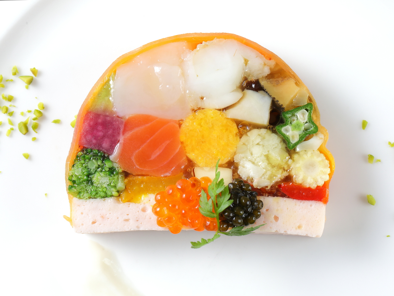 アミューズ・ブーシュ:季節の食材を使った一口前菜で、コースの始まりを華やかに演出します。