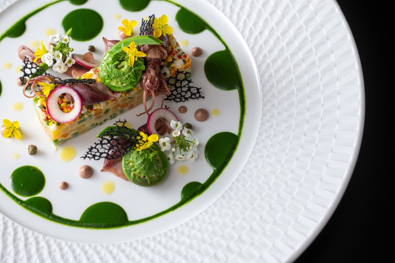 ■蕗の薹をアクセントにしたマセドワーヌサラダを蛍烏賊のコンフィと共に